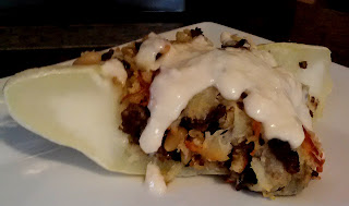 I don't know that the recipe has an official name, but the cook called it "Stuffed Patty Pan Squash". This weekend at the Broad Ripple Farmers' Market, I found the squash, and it was simply called "Summer Squash" (Sorry. I forgot to make note of the vendor.). So call it what you will, but let me just tell you, this stuff is the bomb dot com.